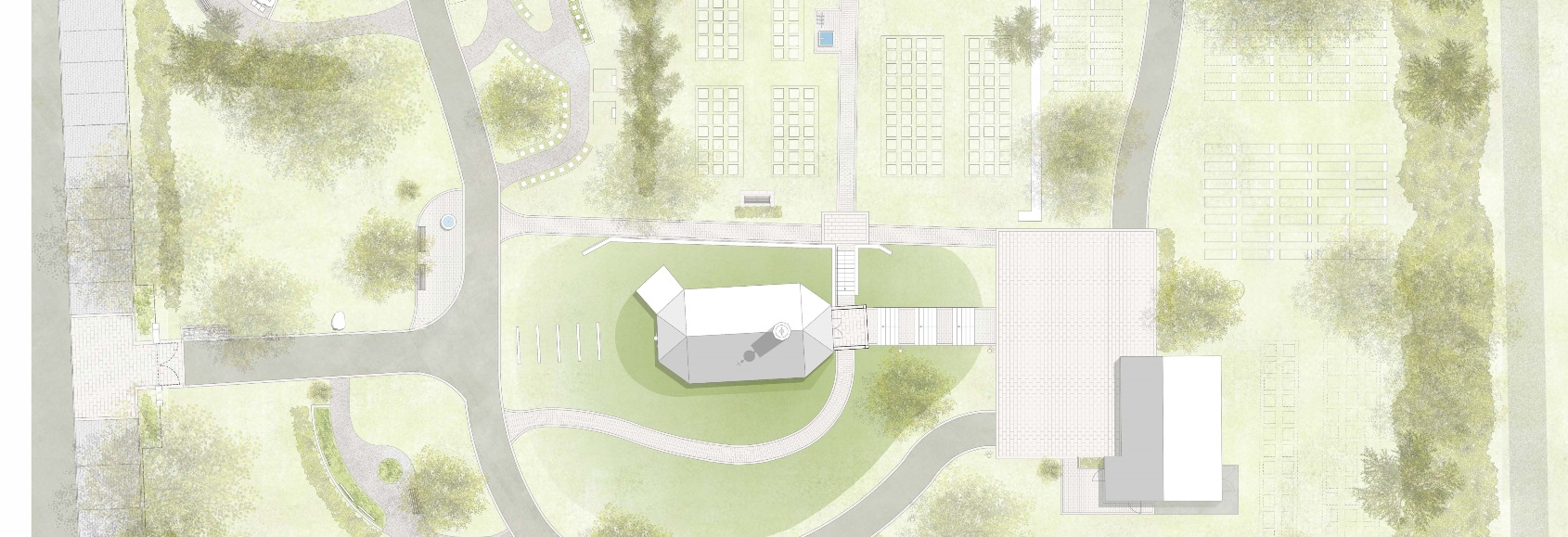 Die vorhandene große Platzfläche im Eingangsbereich im Nordwesten wird zu Gunsten einer größeren Platzfläche vor der Leichenhalle verkleinert. Die Trauerfeiern sollen künftig auf diesem neuen Platz vor der Leichenhalle stattfinden.